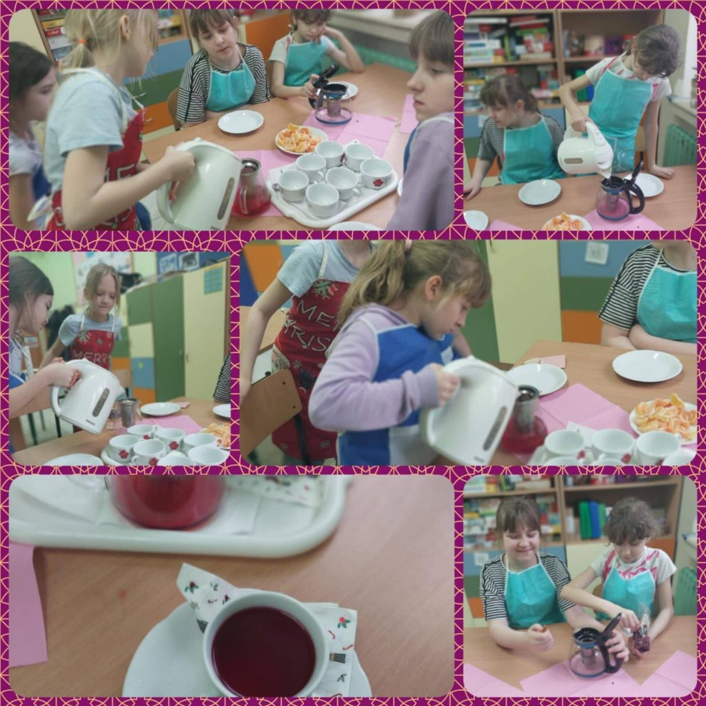 W ramach Międzynarodowego Projektu Edukacyjnego „Z kulturą mi do twarzy” nasza szkoła w miesiącu styczniu zrealizowała następujące zdania:• Moduł III, zadanie 12: „Kochamy babcie i dziadków” – przygotowanie występu dla dziadków,• Moduł IV, zadanie 13 „Weneckie maski” – wykonanie karnawałowych masek techniką dowolną,• Moduł IV, zadanie 24: „Herbatka u Króla” – zorganizowanie zajęć/zabawy tematycznej związanej z etykietą przy stole. Degustacja różnego rodzaju herbat. Zapoznanie z kulturą Wielkiej Brytanii.