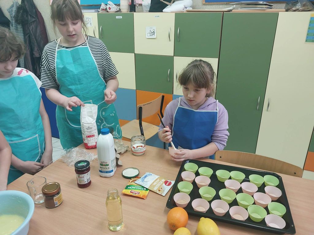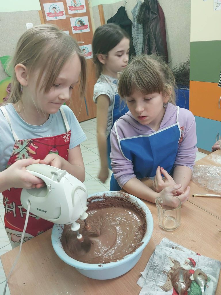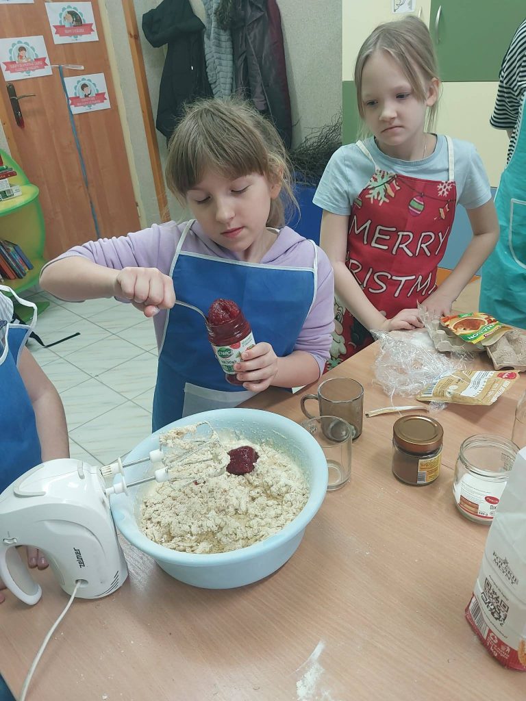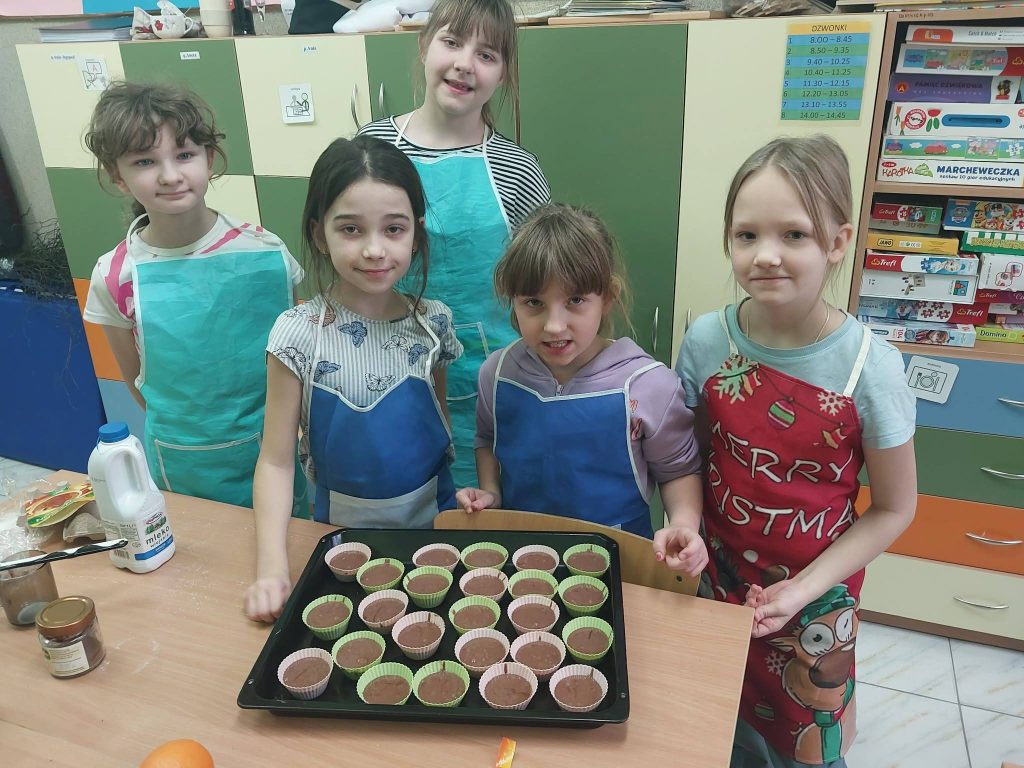 W ostatnim tygodniu przed feriami zapachniało herbatką zimową i czekoladowymi babeczkami.Warsztaty kulinarne są bardzo lubiane przez dzieci. Wszystkie Dziewczynki spisały się na medal Zobaczcie sami. Nad wszystkim czuwa p.Ania Jaciubek