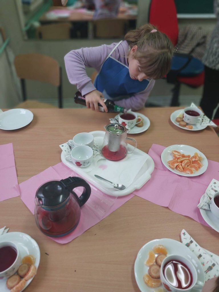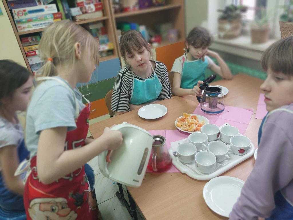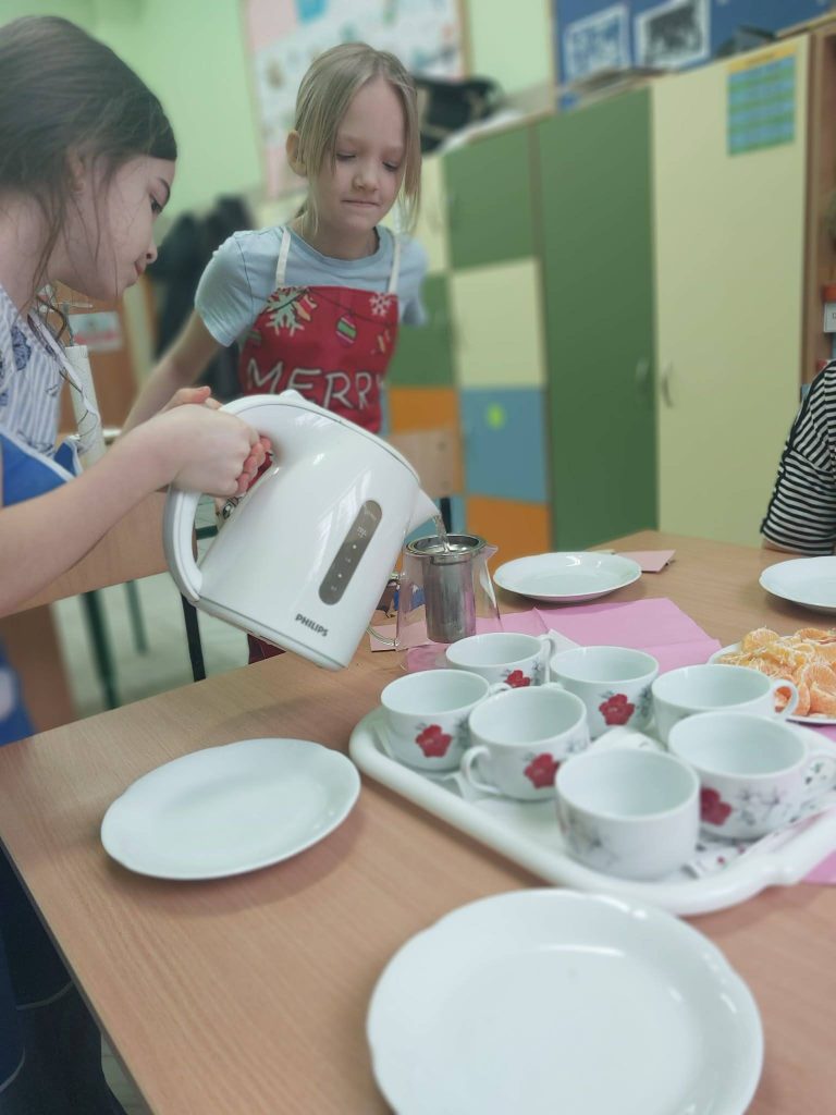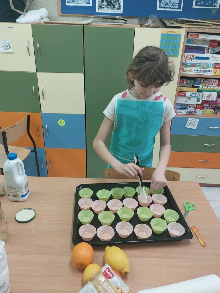 W ostatnim tygodniu przed feriami zapachniało herbatką zimową i czekoladowymi babeczkami.Warsztaty kulinarne są bardzo lubiane przez dzieci. Wszystkie Dziewczynki spisały się na medal Zobaczcie sami. Nad wszystkim czuwa p.Ania Jaciubek